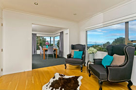 Set well back from the road, in an exclusive quiet cul-de-sac, you will find this spacious family home with its sweeping views over the city and harbour.