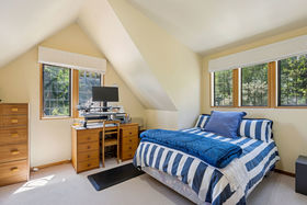 Upstairs, the bedrooms sit on opposite sides of the staircase. The main suite is generous and has its own personality, with an ensuite and an integrated office nook that makes great use of the space. The third bedroom sits across the landing, and like the others, includes a built-in wardrobe. There's also excellent storage placed sensibly throughout the home.